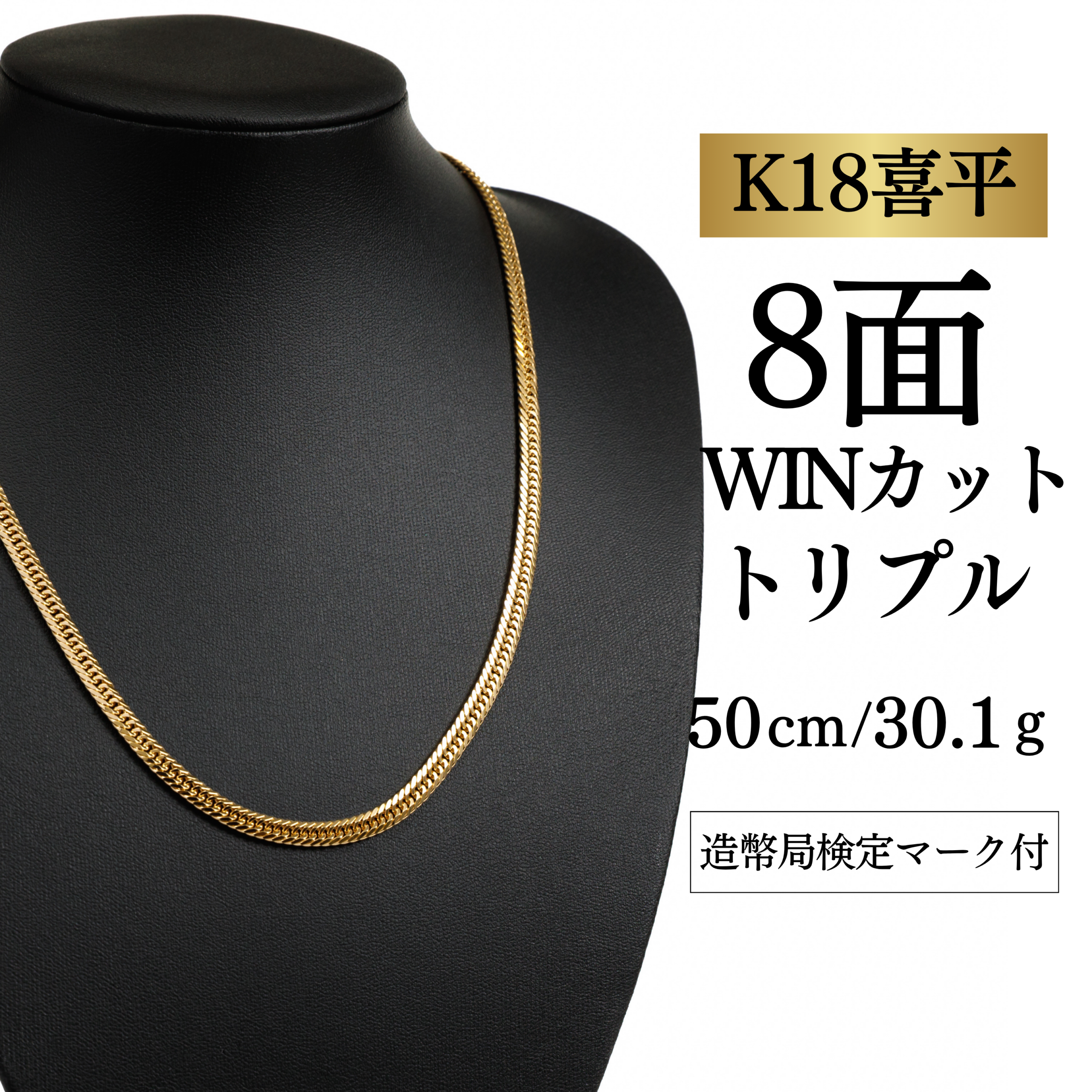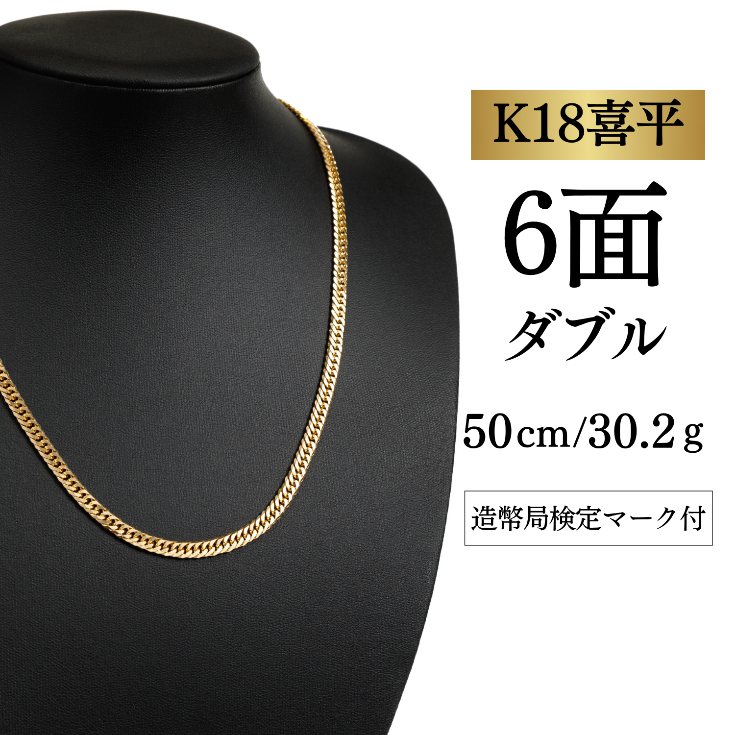 新品未使用 【K18YG/18金】イエローゴールド 喜平ネックレス 6面カット ダブル【30.2g / 50cm】