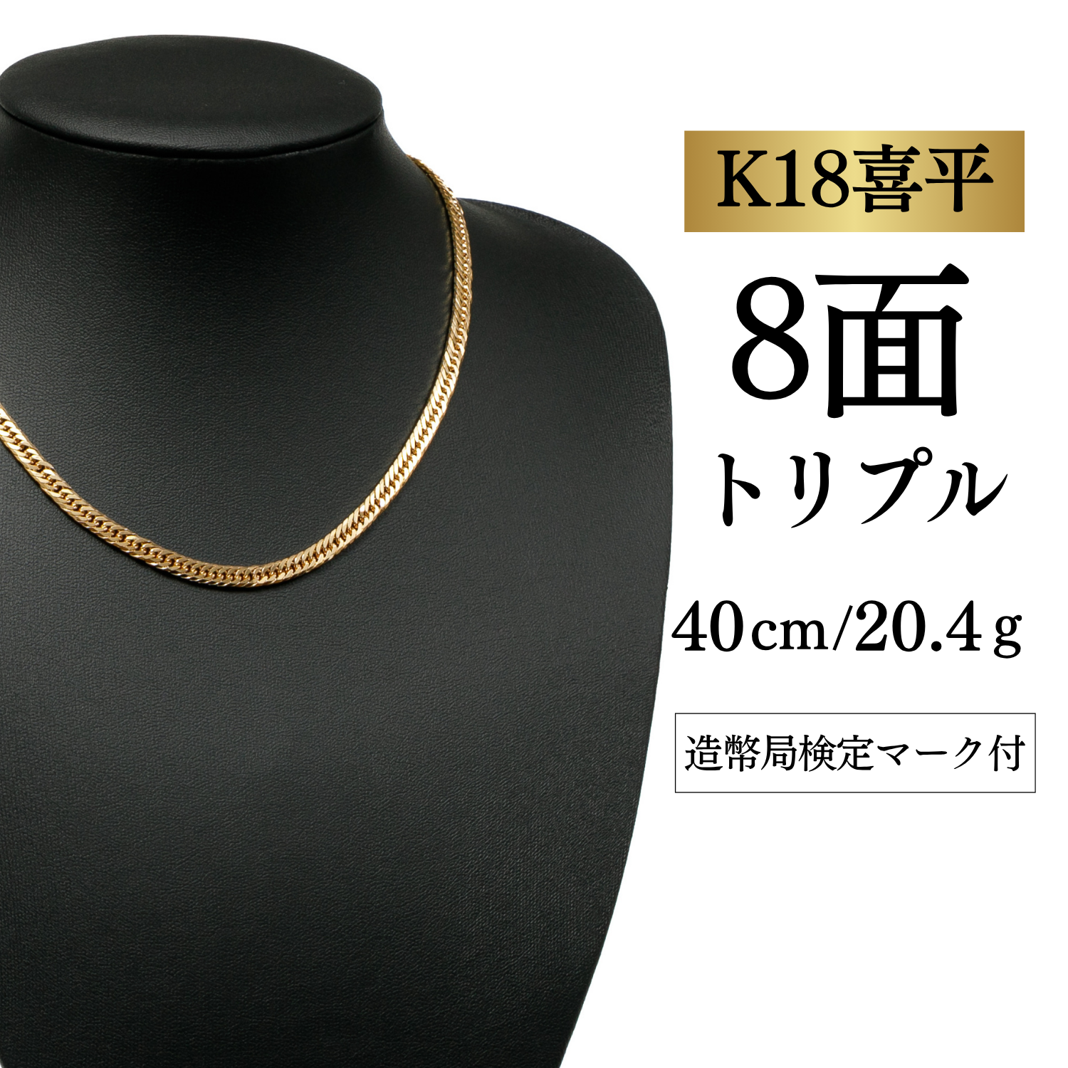 【K18YG/18金】イエローゴールド 喜平ネックレス 8面カット トリプル【20.4g / 40cm】