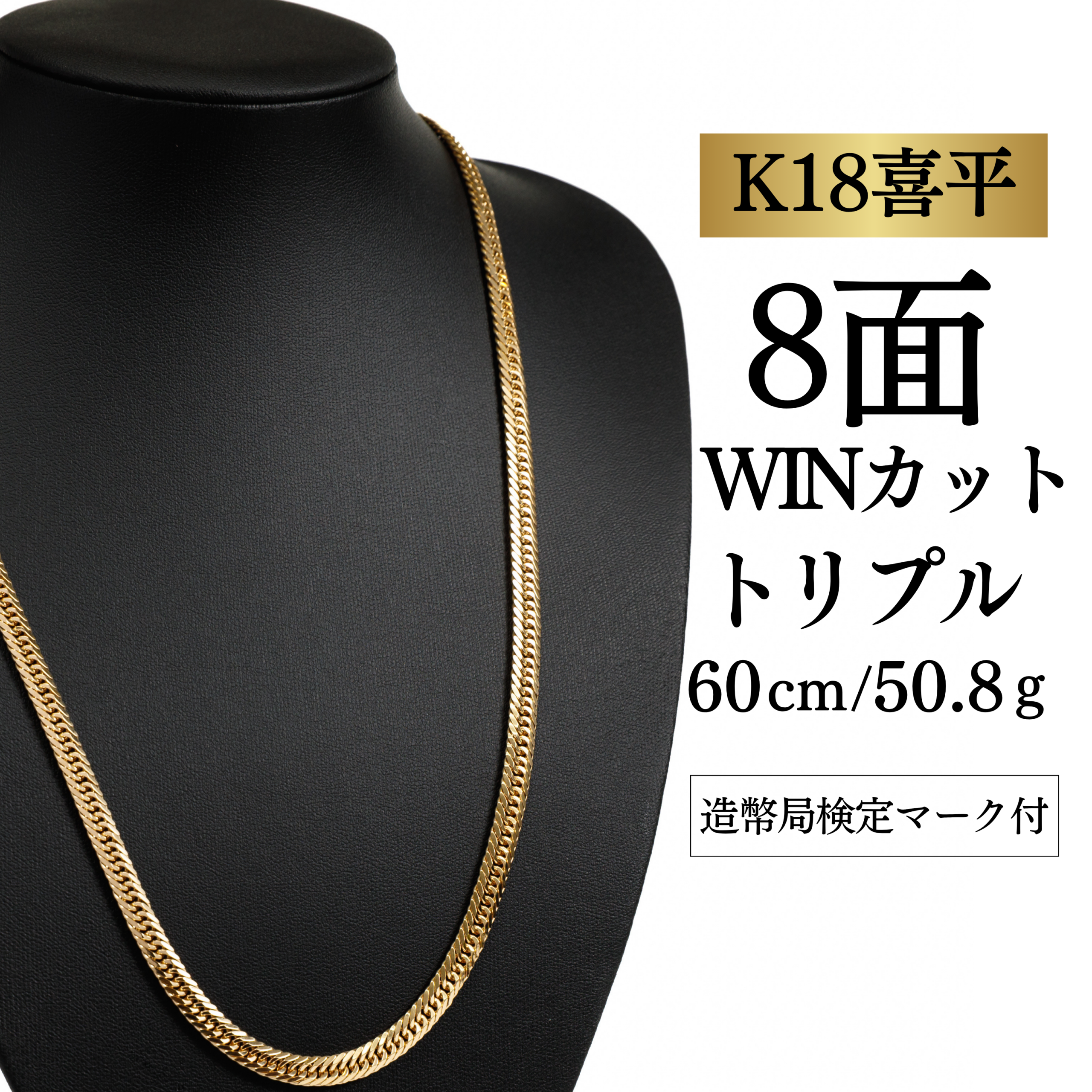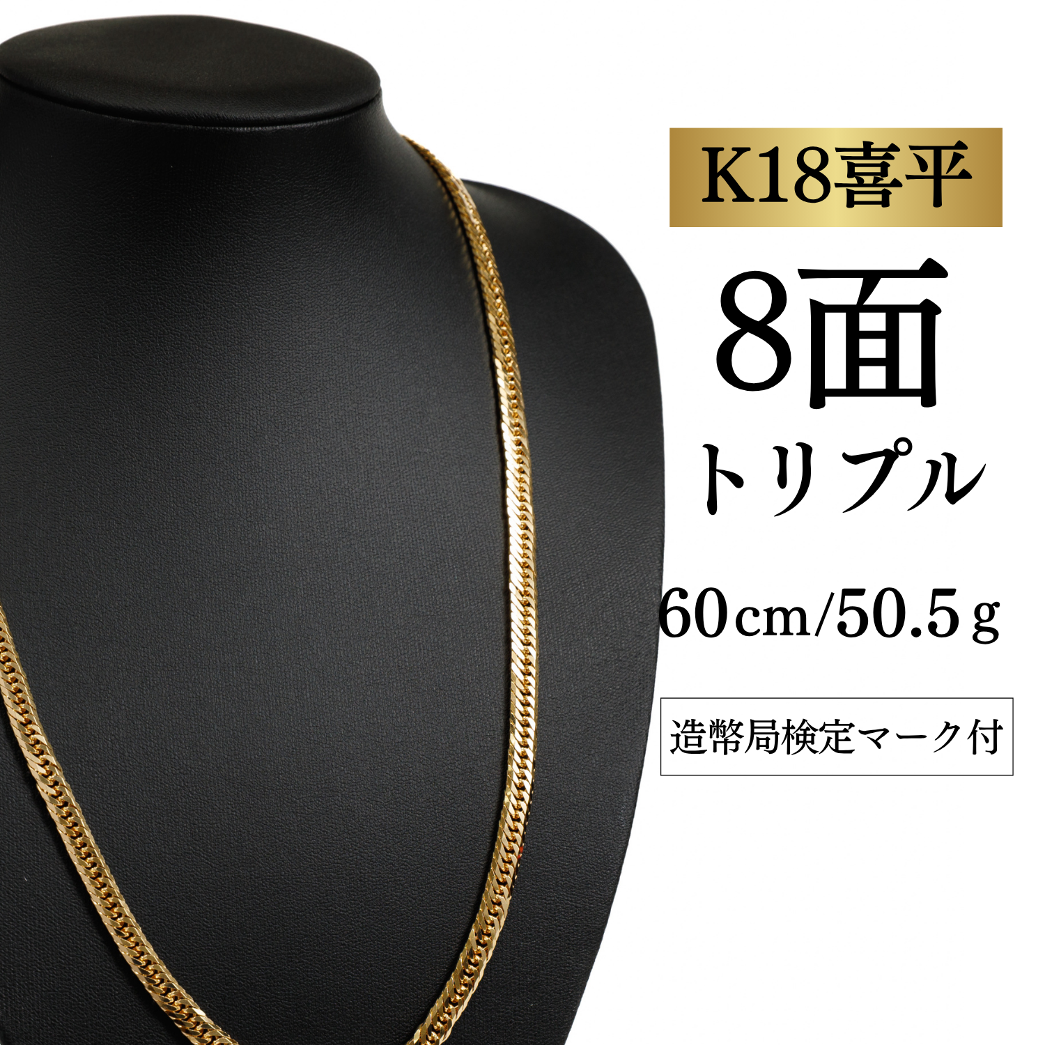 【K18YG/18金】イエローゴールド 喜平ネックレス 8面カット トリプル【50.8g / 60cm】