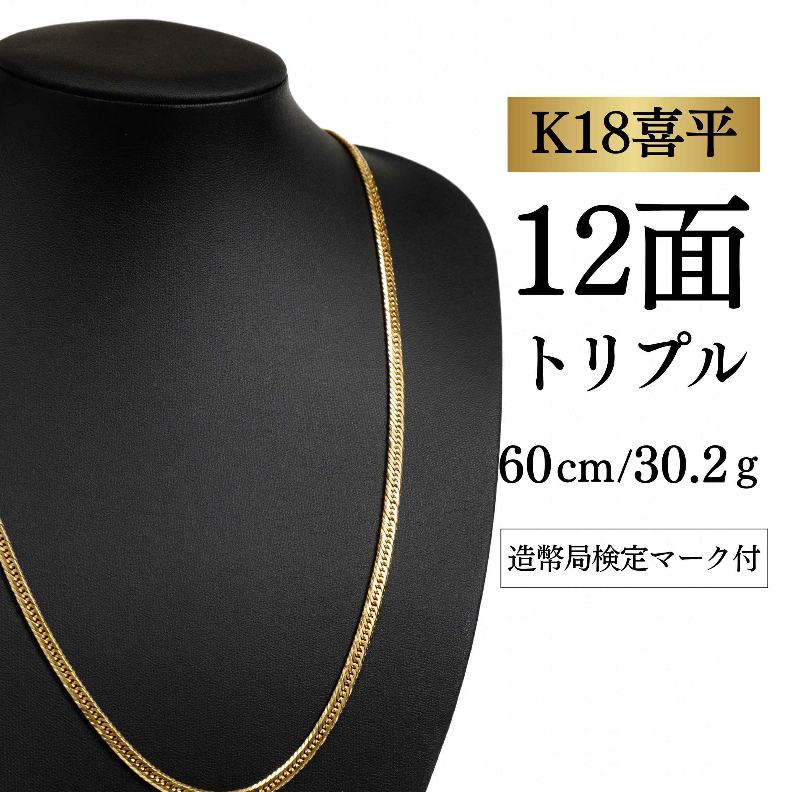 【K18YG/18金】イエローゴールド 喜平ネックレス 12面カット トリプル【30.2g / 60cm】