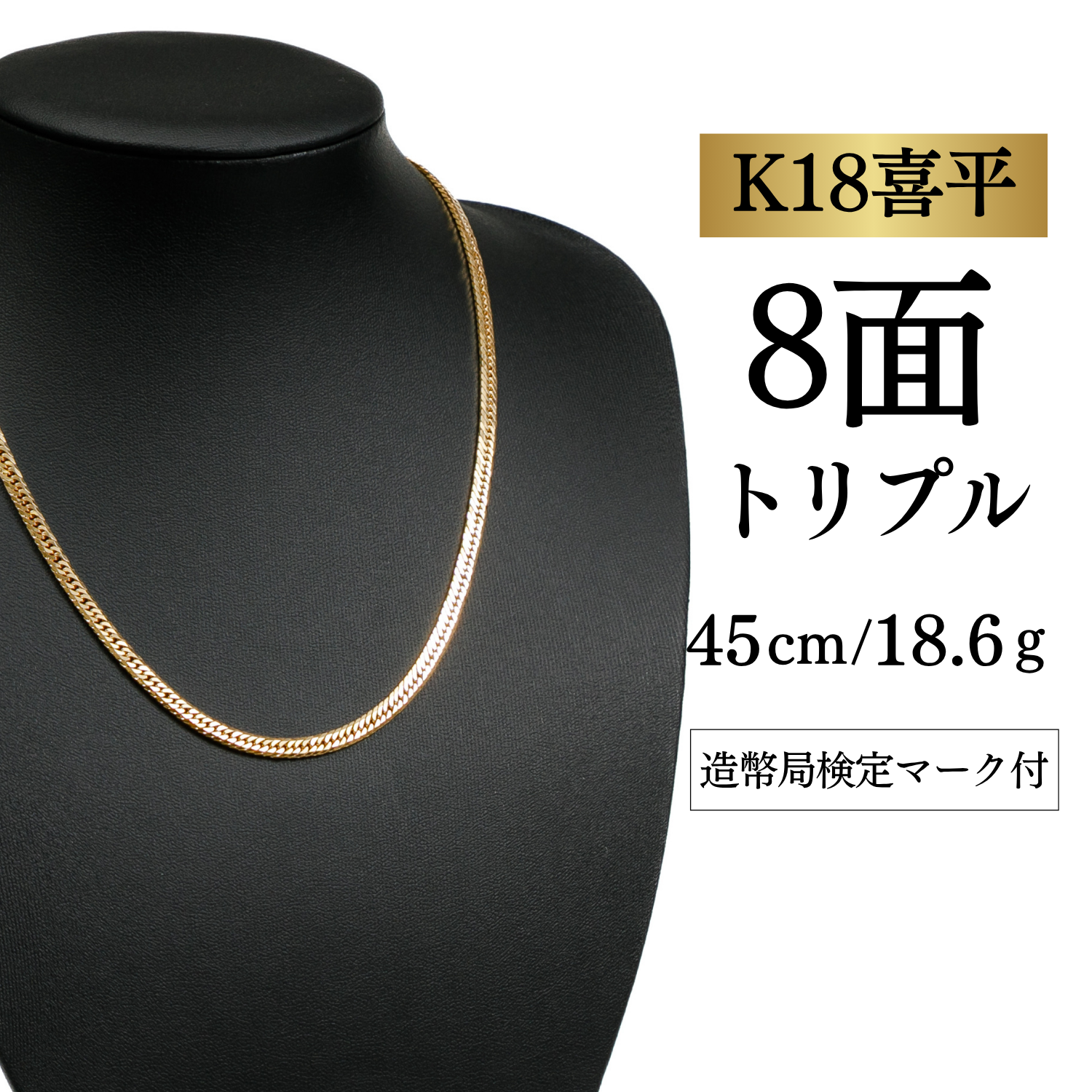 【K18YG/18金】イエローゴールド 喜平ネックレス 8面カット トリプル【18.6g / 45cm】