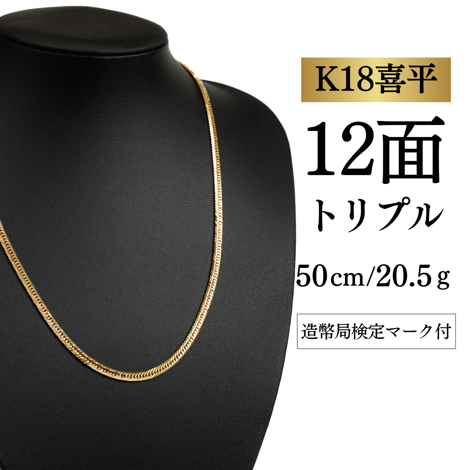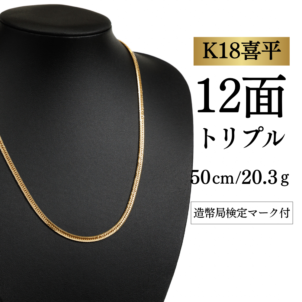 【K18YG/18金】イエローゴールド 喜平ネックレス 12面カット トリプル【20.5g / 50cm】