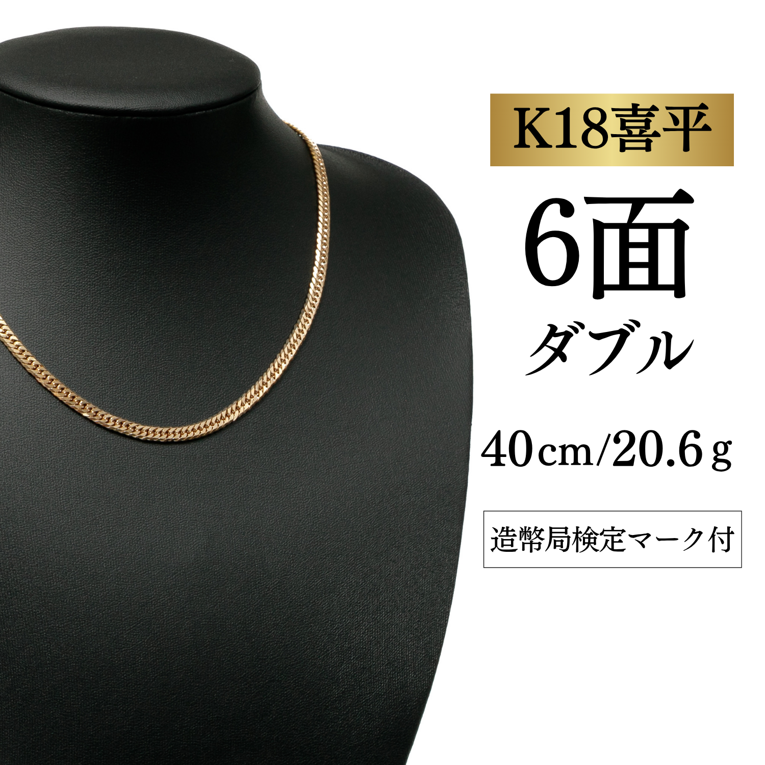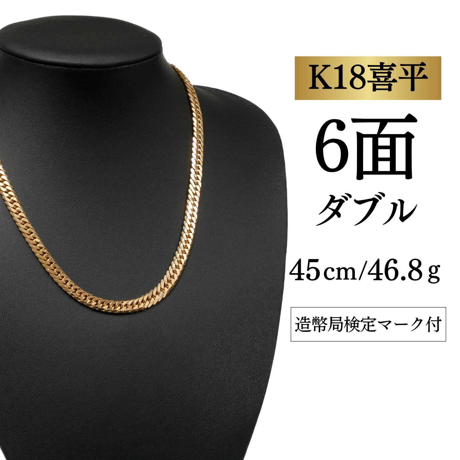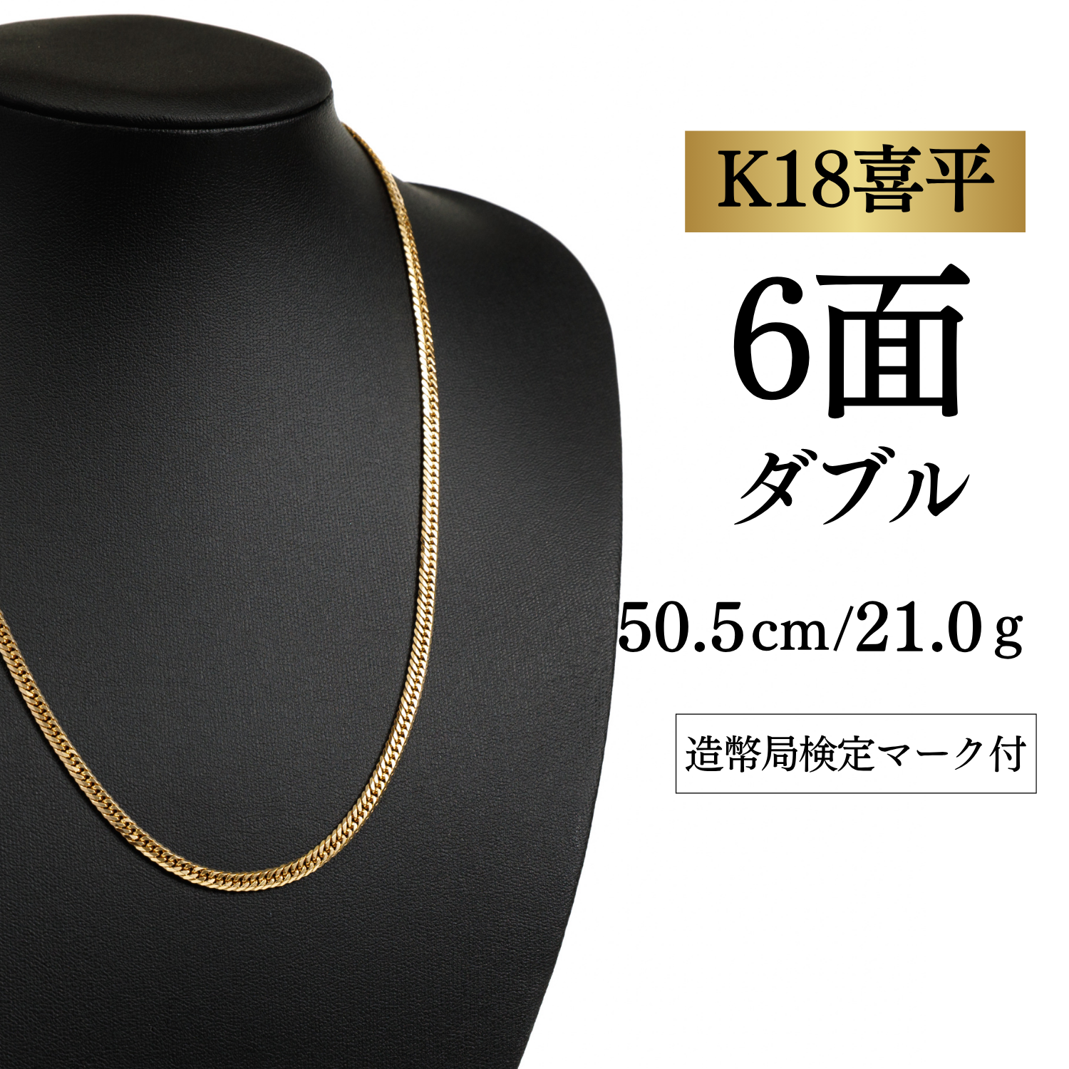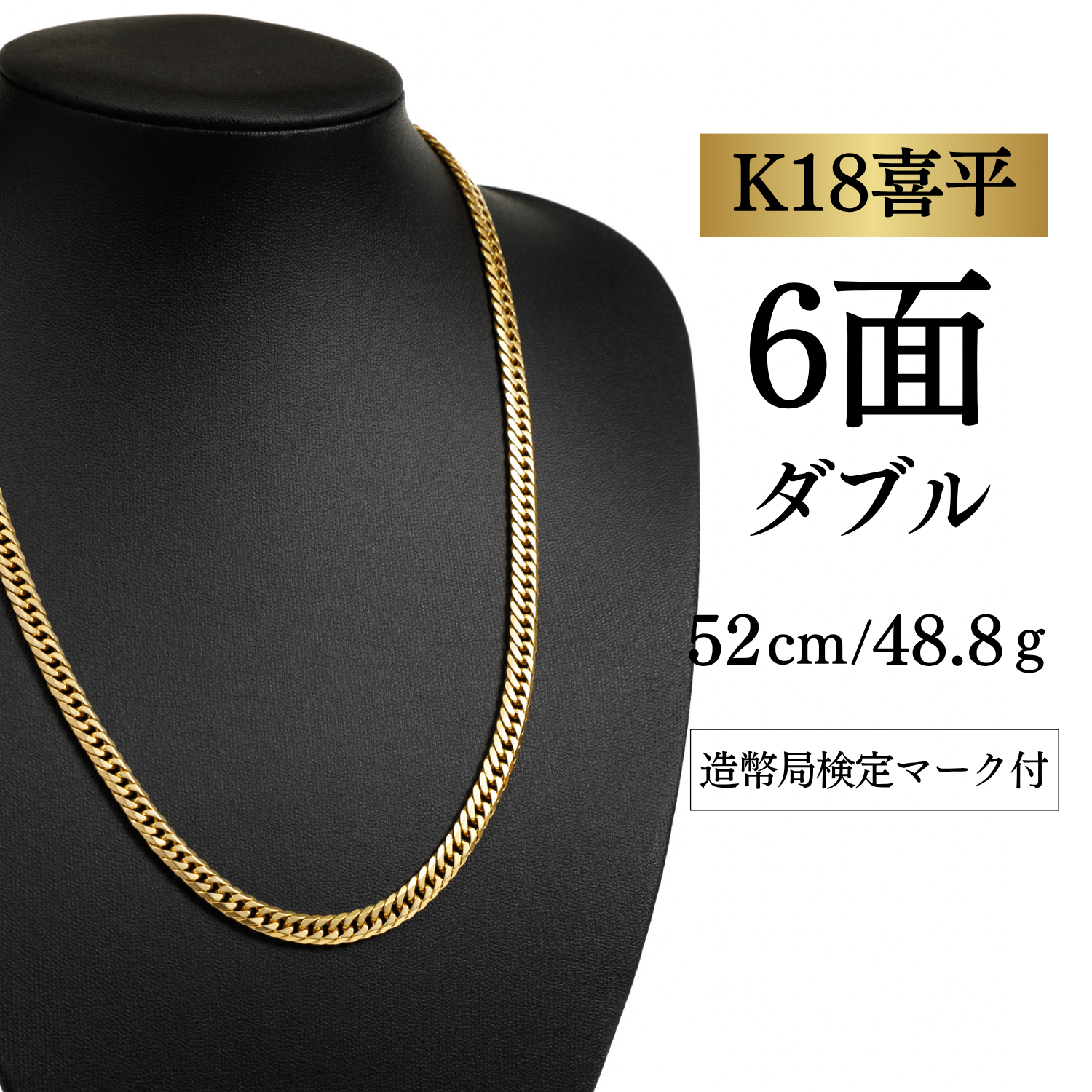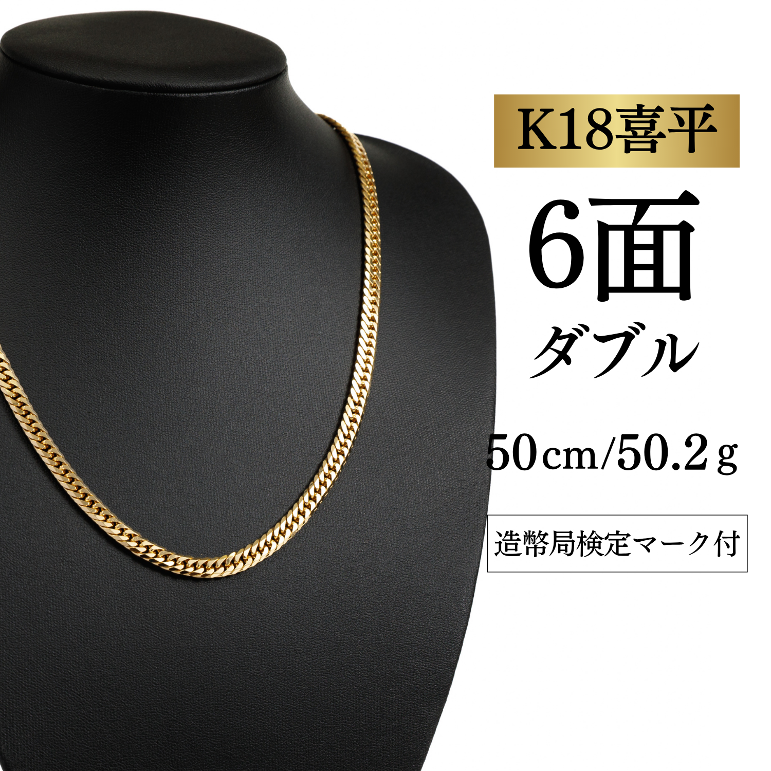 新品未使用 【K18YG/18金】イエローゴールド 喜平ネックレス 6面カット ダブル【10.2g / 50cm】