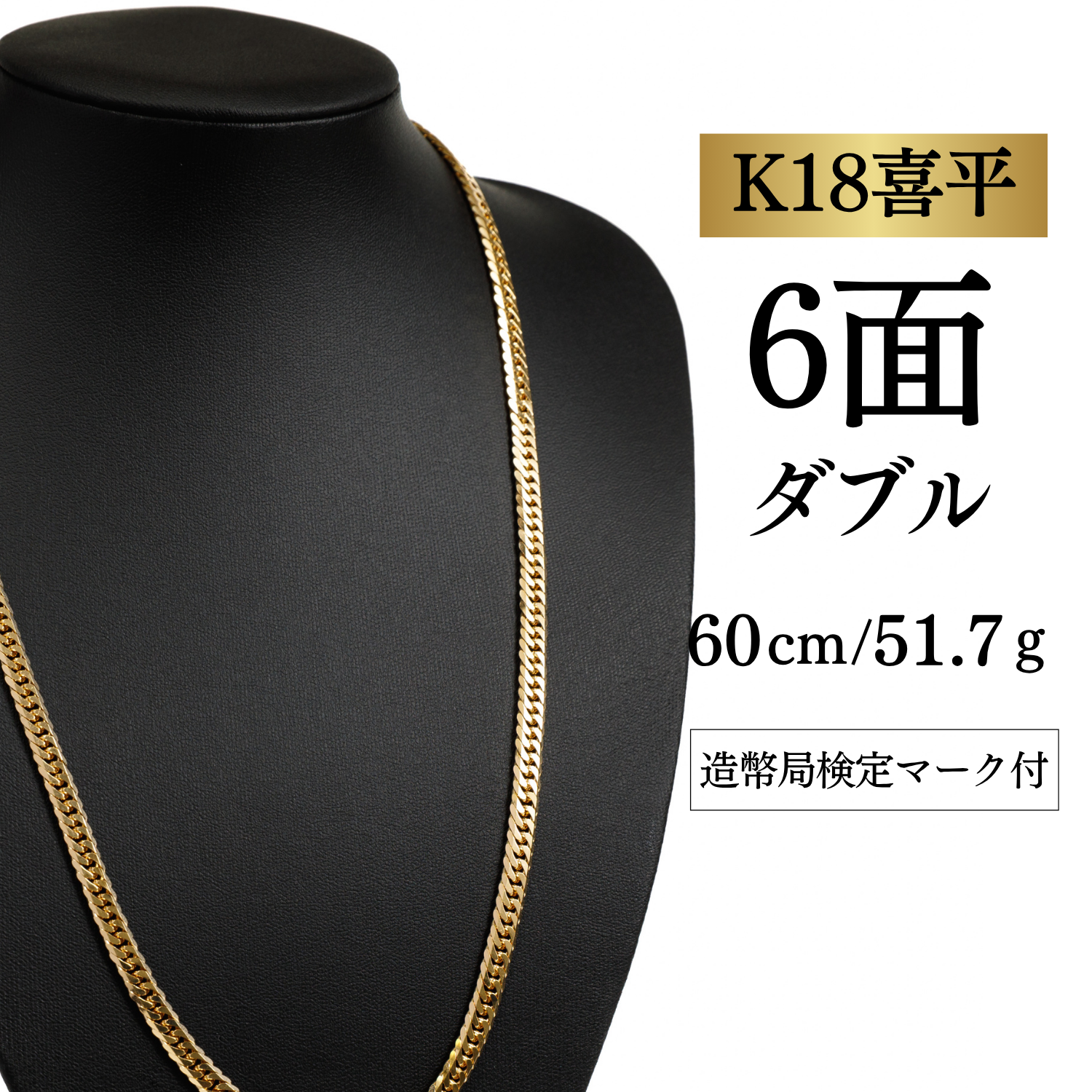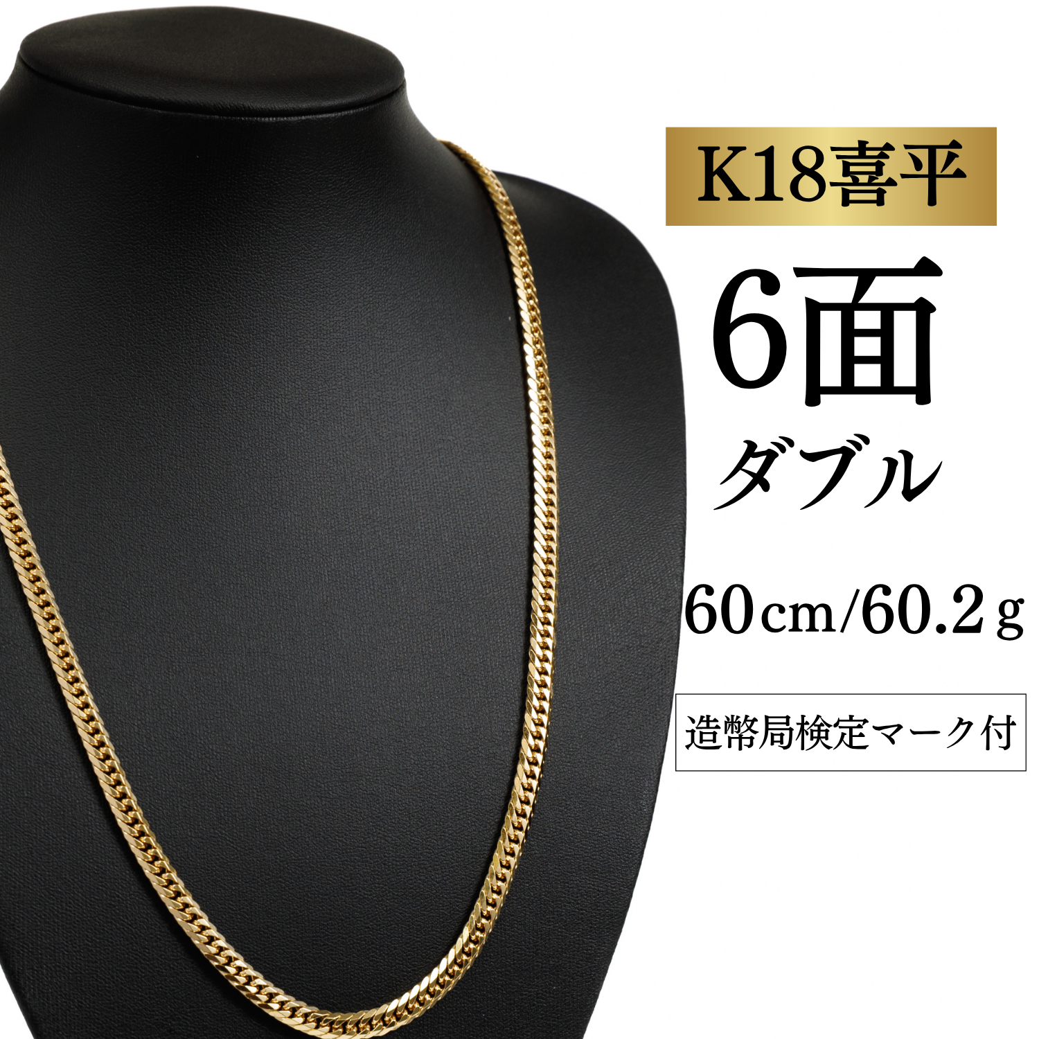 新品仕上済 【K18YG/18金】イエローゴールド 喜平ネックレス 6面カット ダブル【49.3g / 60cm】