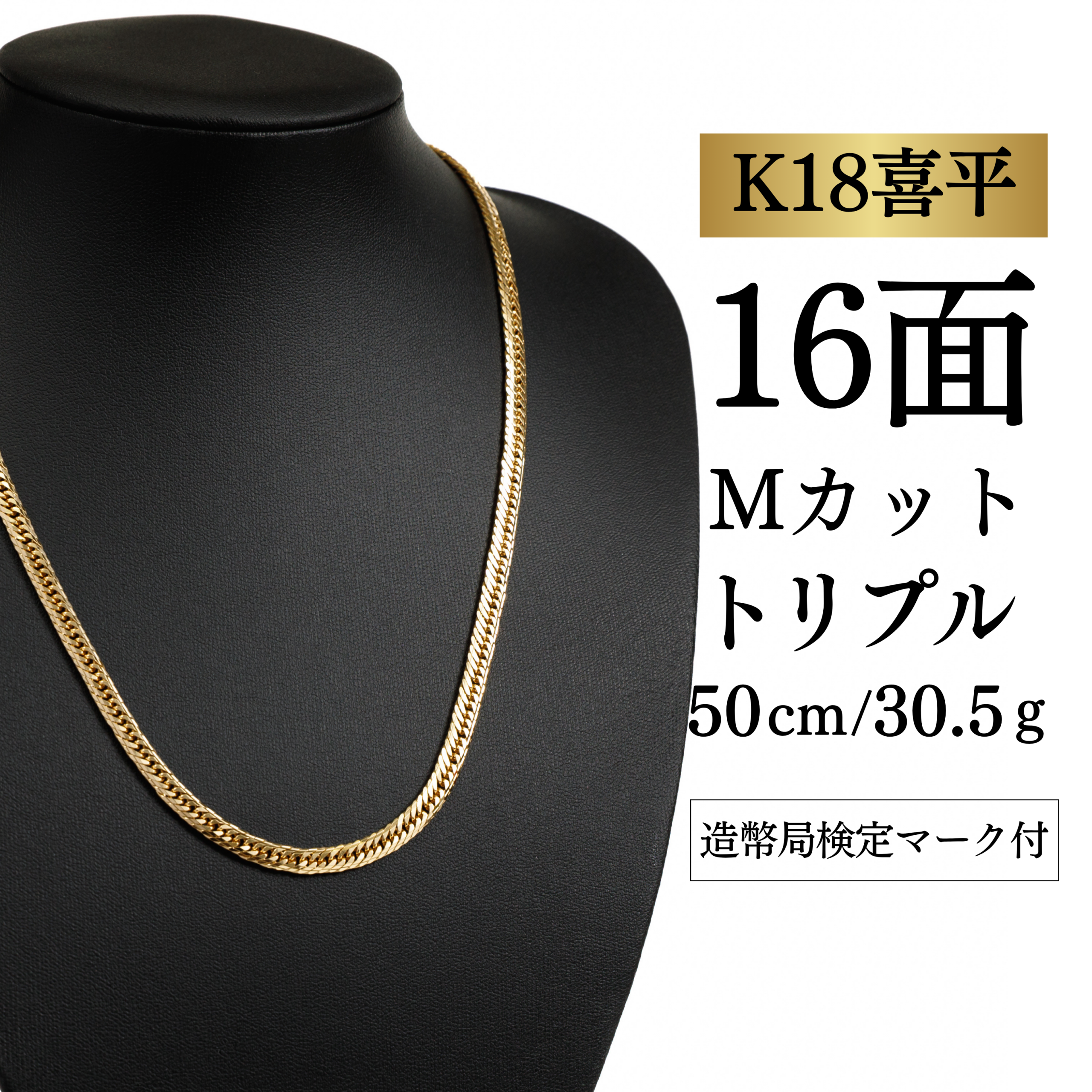 【K18YG/18金】イエローゴールド 喜平ネックレス 16面Mカット トリプル【30.5g / 50cm】