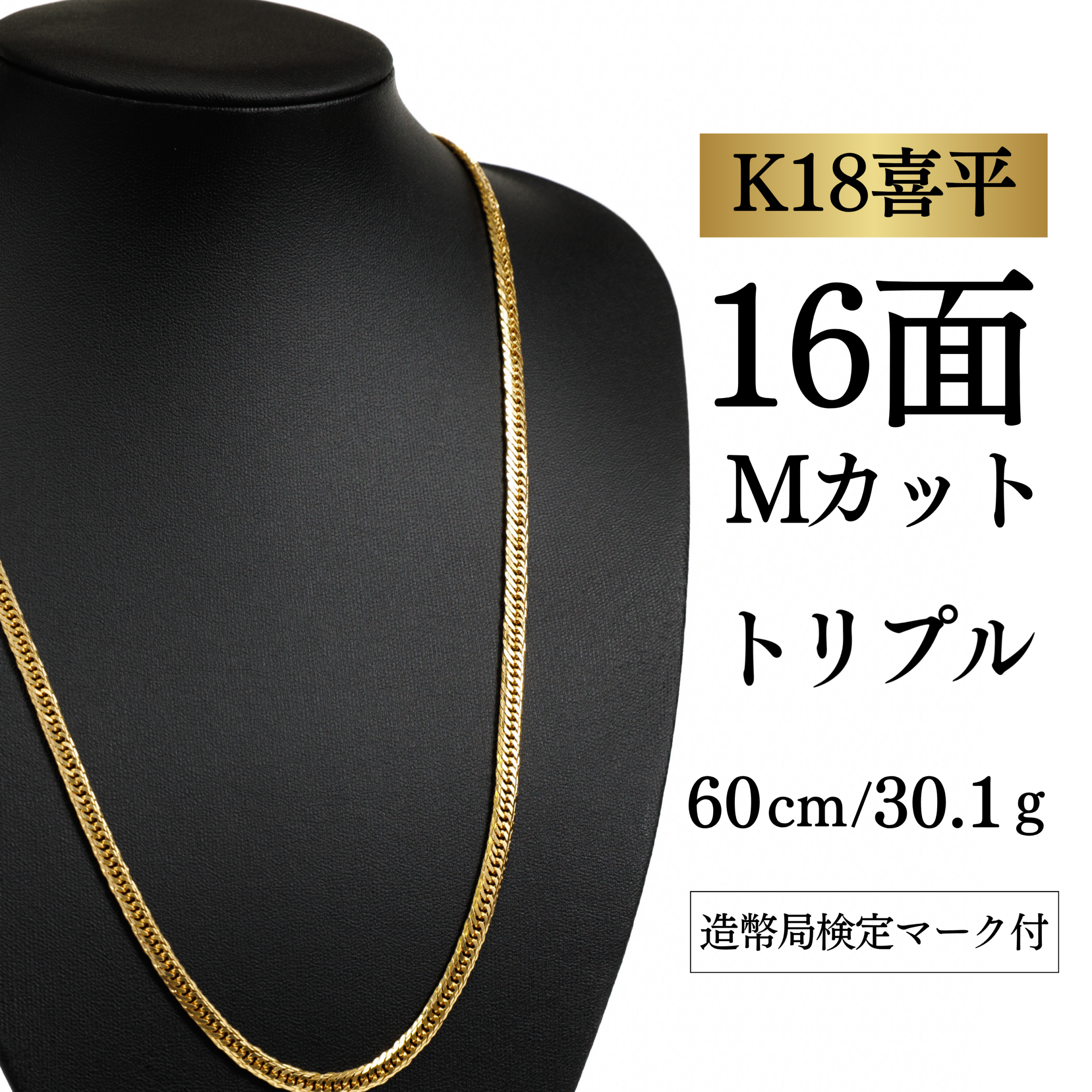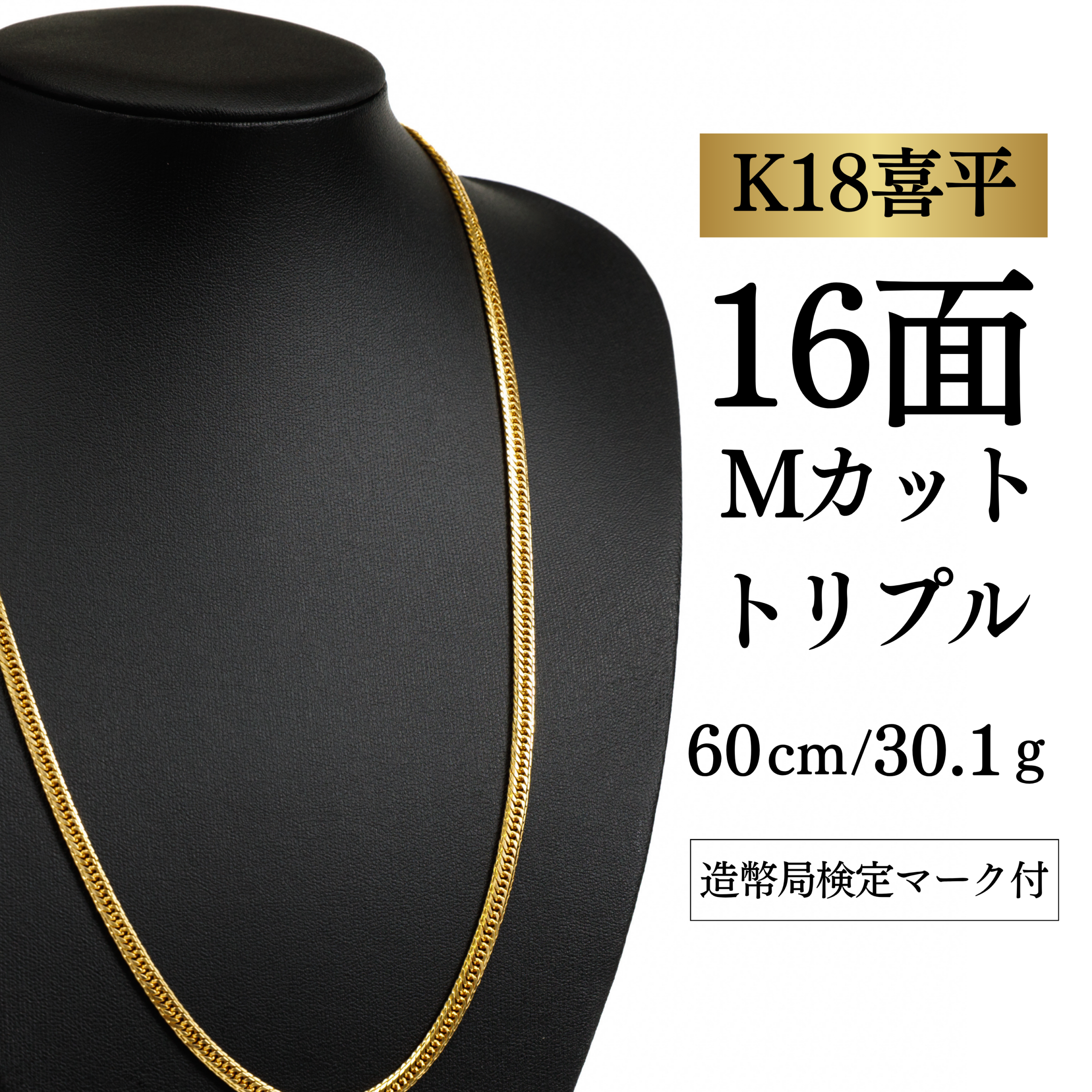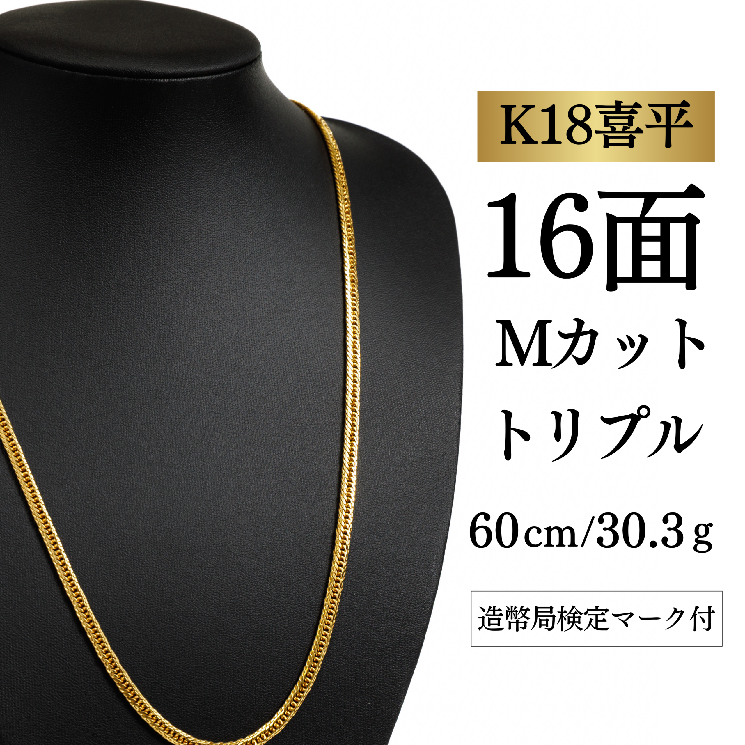 【K18YG/18金】イエローゴールド 喜平ネックレス 16面Mカット トリプル【30.3g / 60cm】