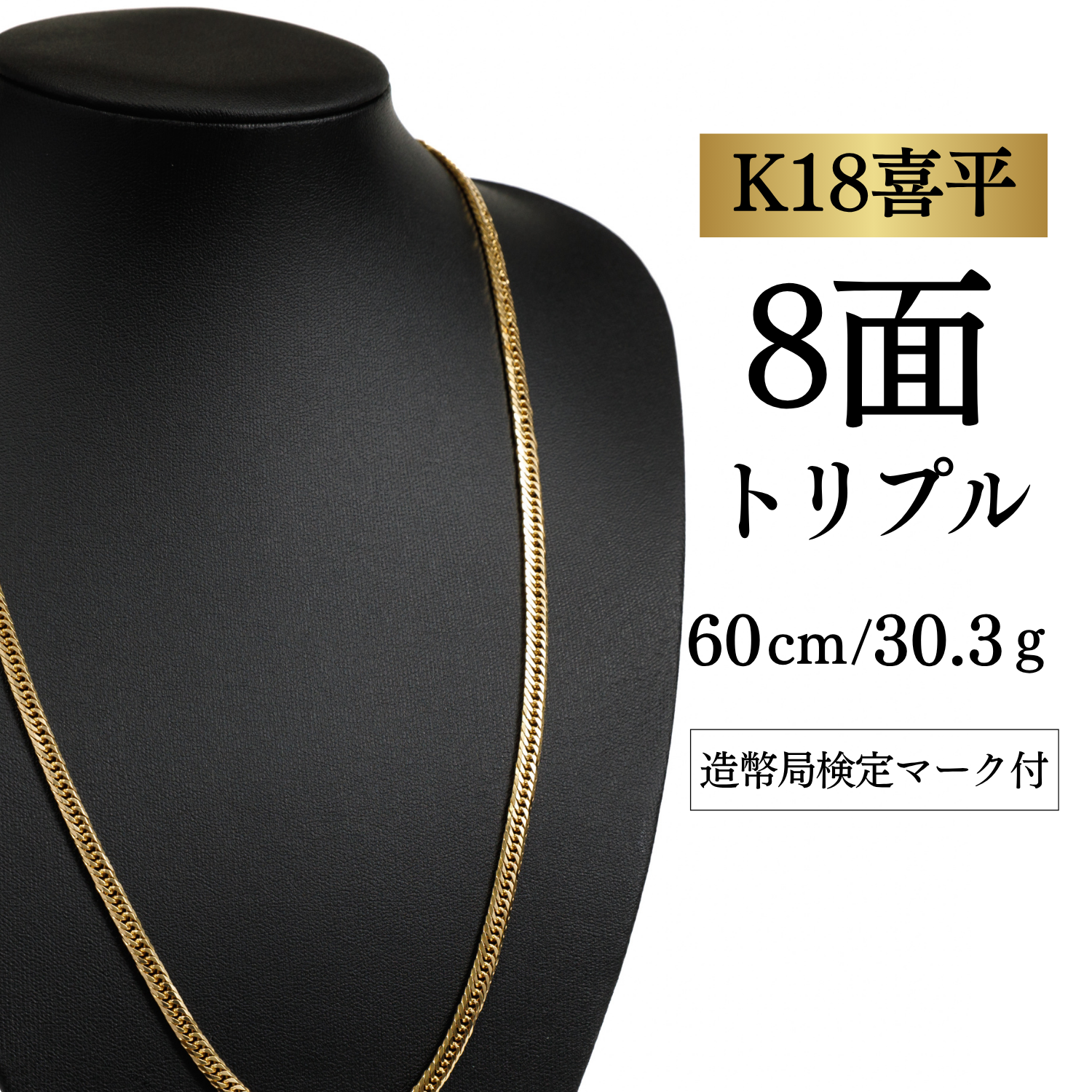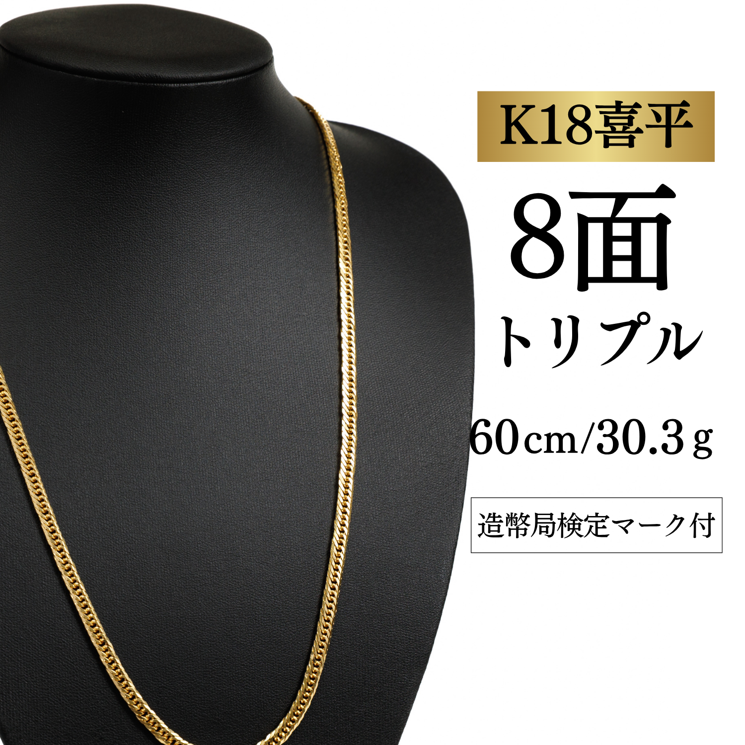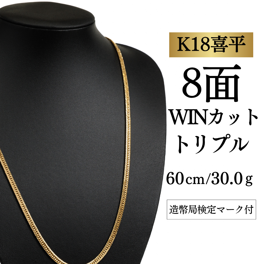 【K18YG/18金】イエローゴールド 喜平ネックレス 8面カット トリプル【30.3g / 60cm】