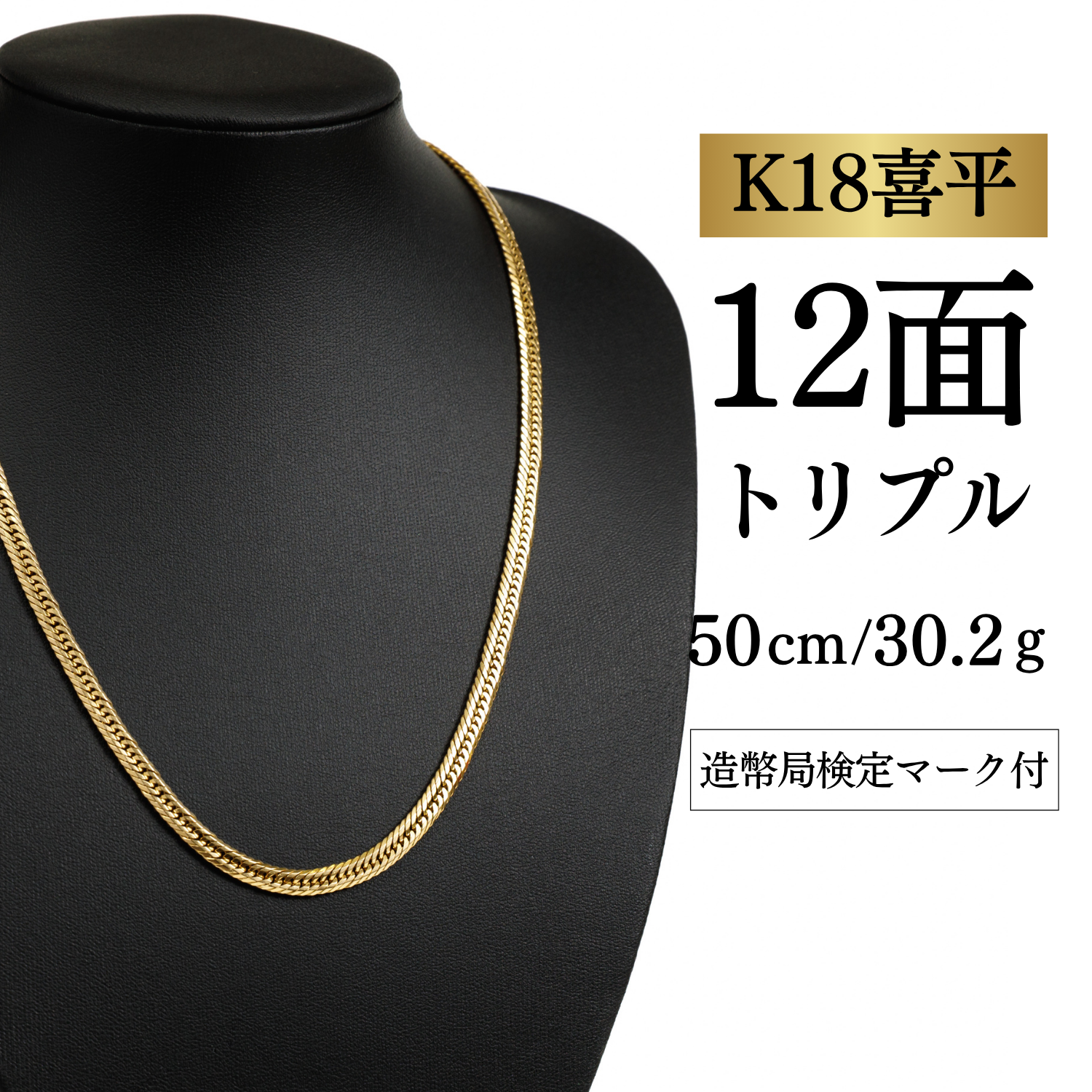 【K18YG/18金】イエローゴールド 喜平ネックレス 12面カット トリプル【30.6g / 50cm】