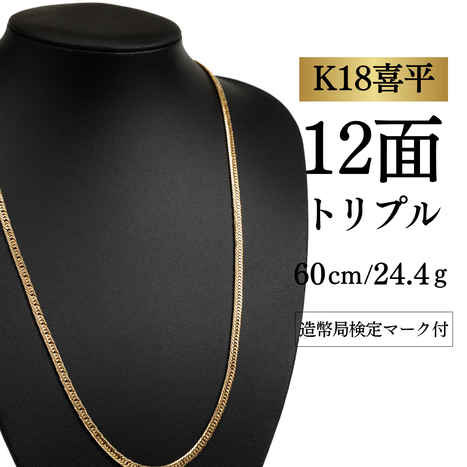 【K18YG/18金】イエローゴールド 喜平ネックレス 12面カット トリプル【24.4g / 60cm】