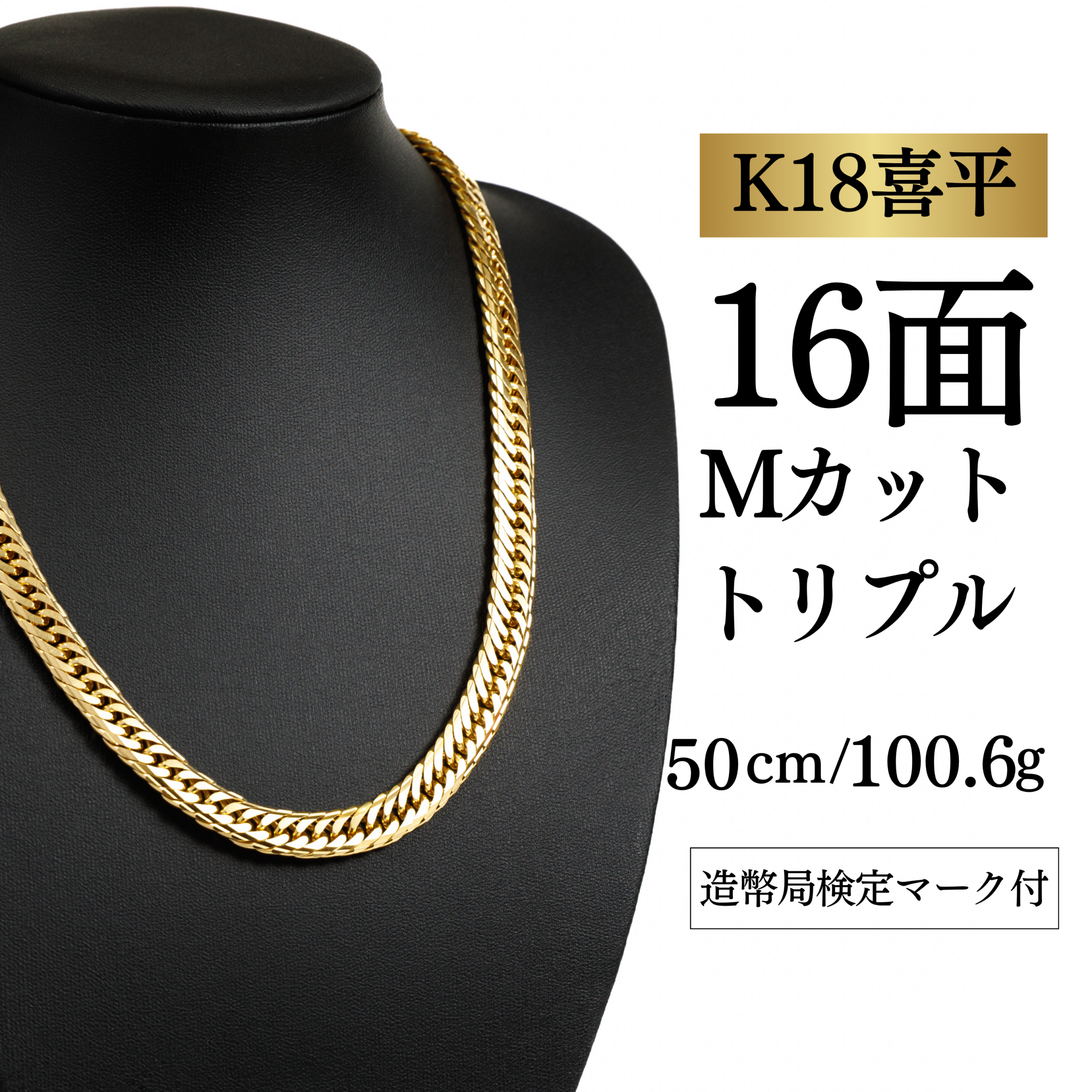 【K18YG/18金】イエローゴールド 喜平ネックレス 16面Mカット トリプル【100.6g / 50cm】