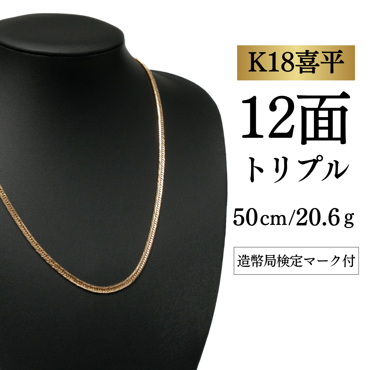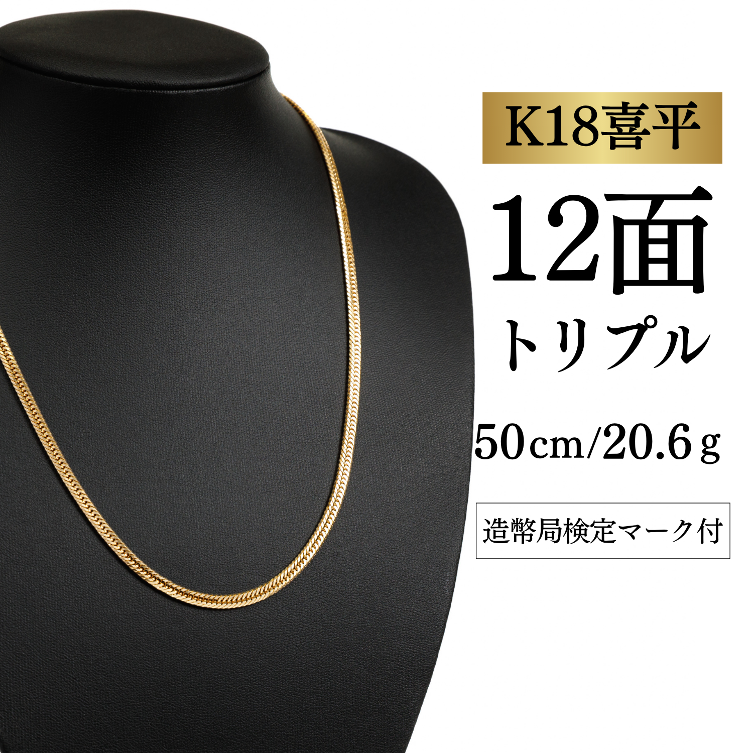 【K18YG/18金】イエローゴールド 喜平ネックレス 12面カット トリプル【20.6g / 50cm】