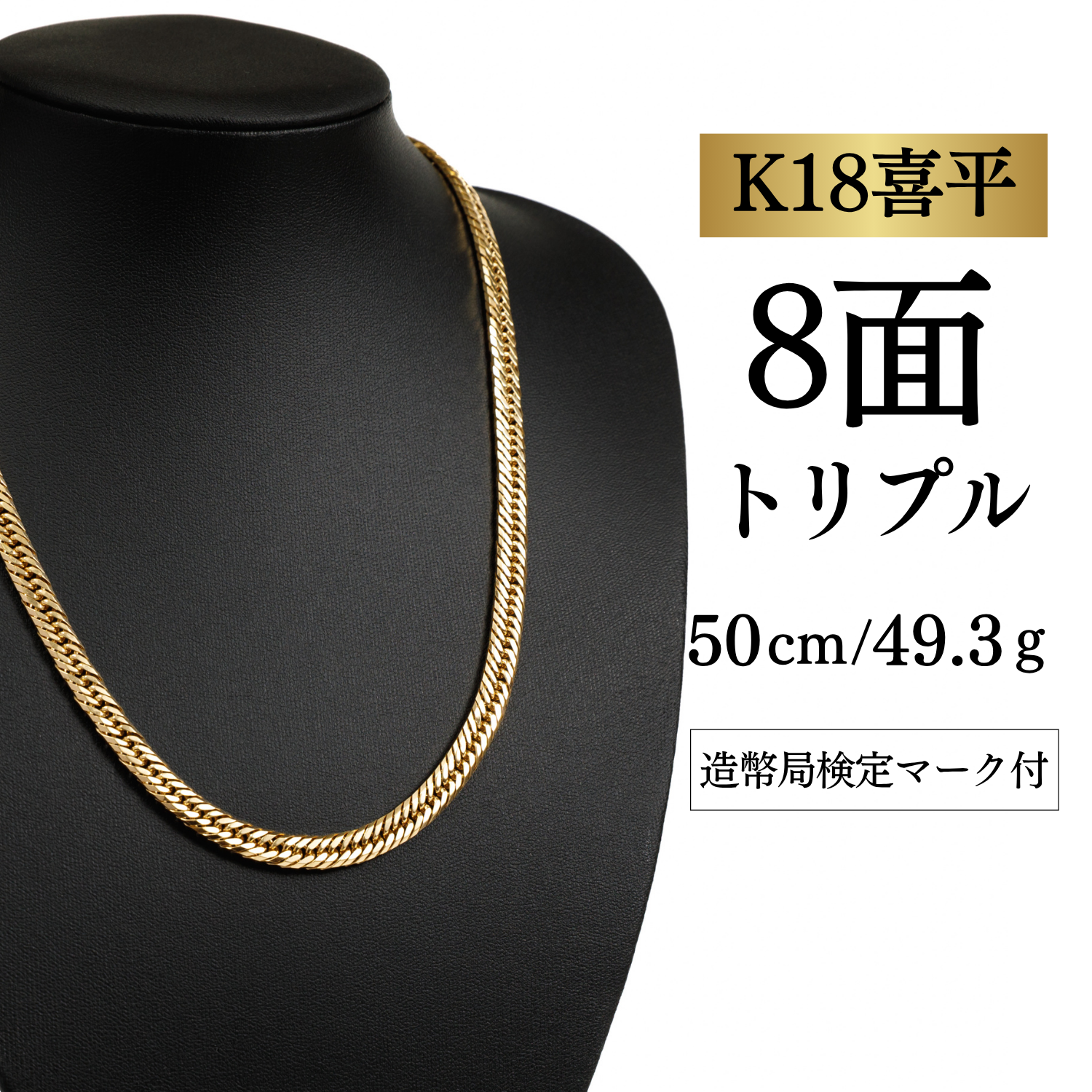 【K18YG/18金】イエローゴールド 喜平ネックレス 8面カット トリプル【49.3g / 50cm】