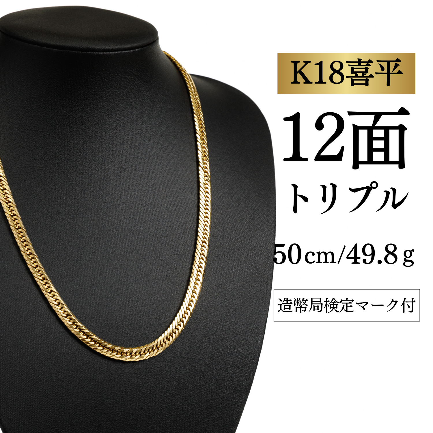 【K18YG/18金】イエローゴールド 喜平ネックレス 12面カット トリプル【49.8g / 50cm】