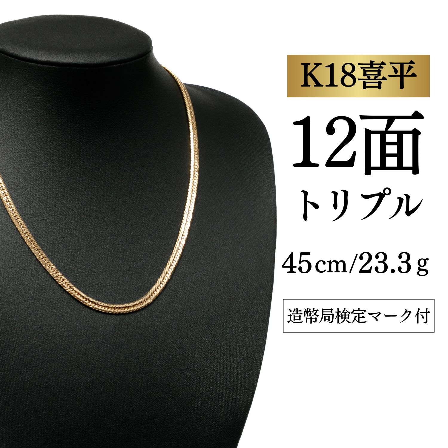 【K18YG/18金】イエローゴールド 喜平ネックレス 12面カット トリプル【23.3g / 45cm】