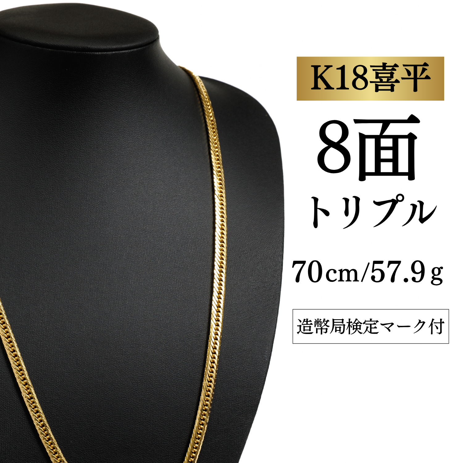 【K18YG/18金】イエローゴールド 喜平ネックレス 8面カット トリプル【57.9g / 70cm】