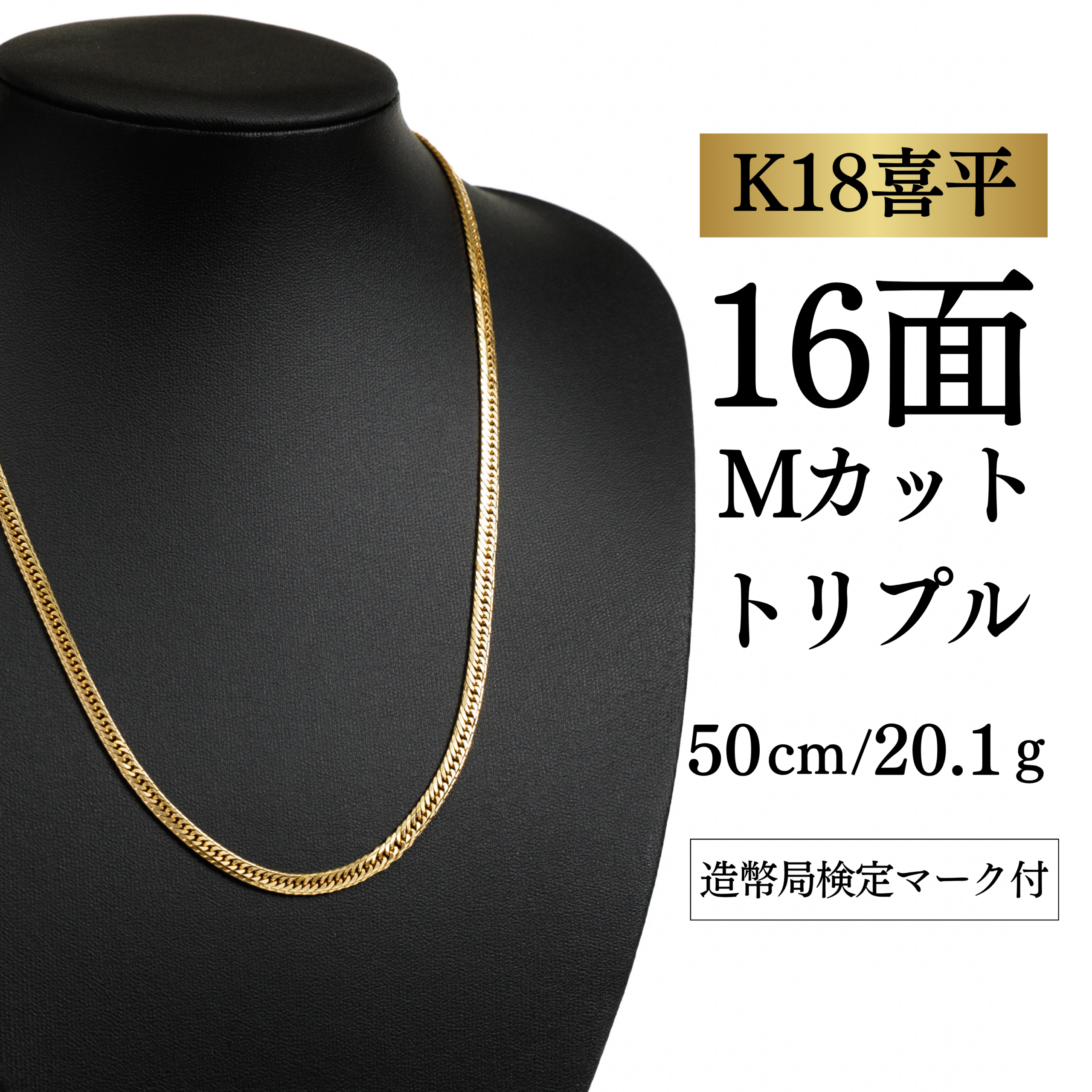 【K18YG/18金】イエローゴールド 喜平ネックレス 16面Mカット トリプル【20.1g / 50cm】