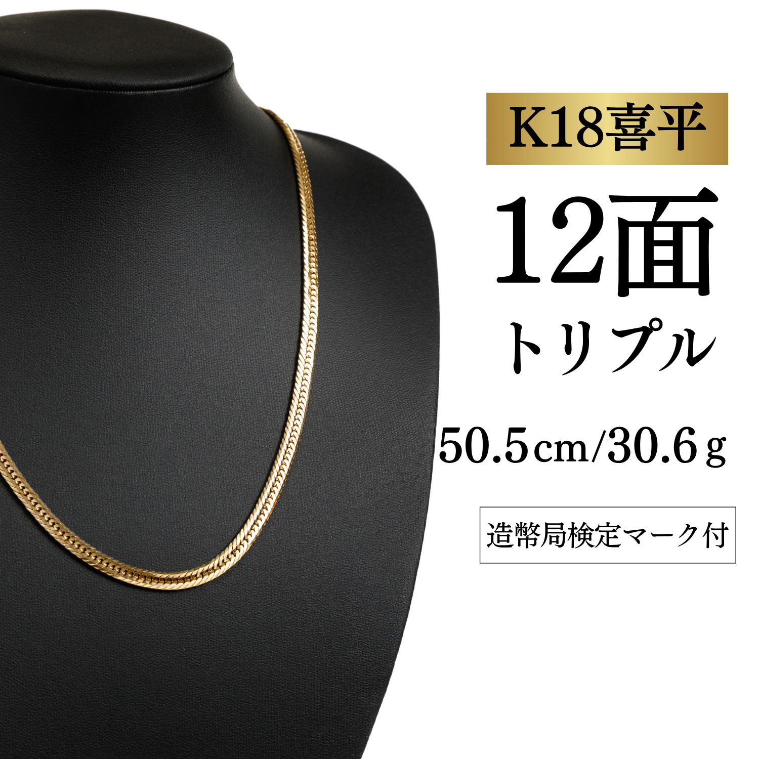 【K18YG/18金】イエローゴールド 喜平ネックレス 12面カット トリプル【30.6g / 50.5cm】