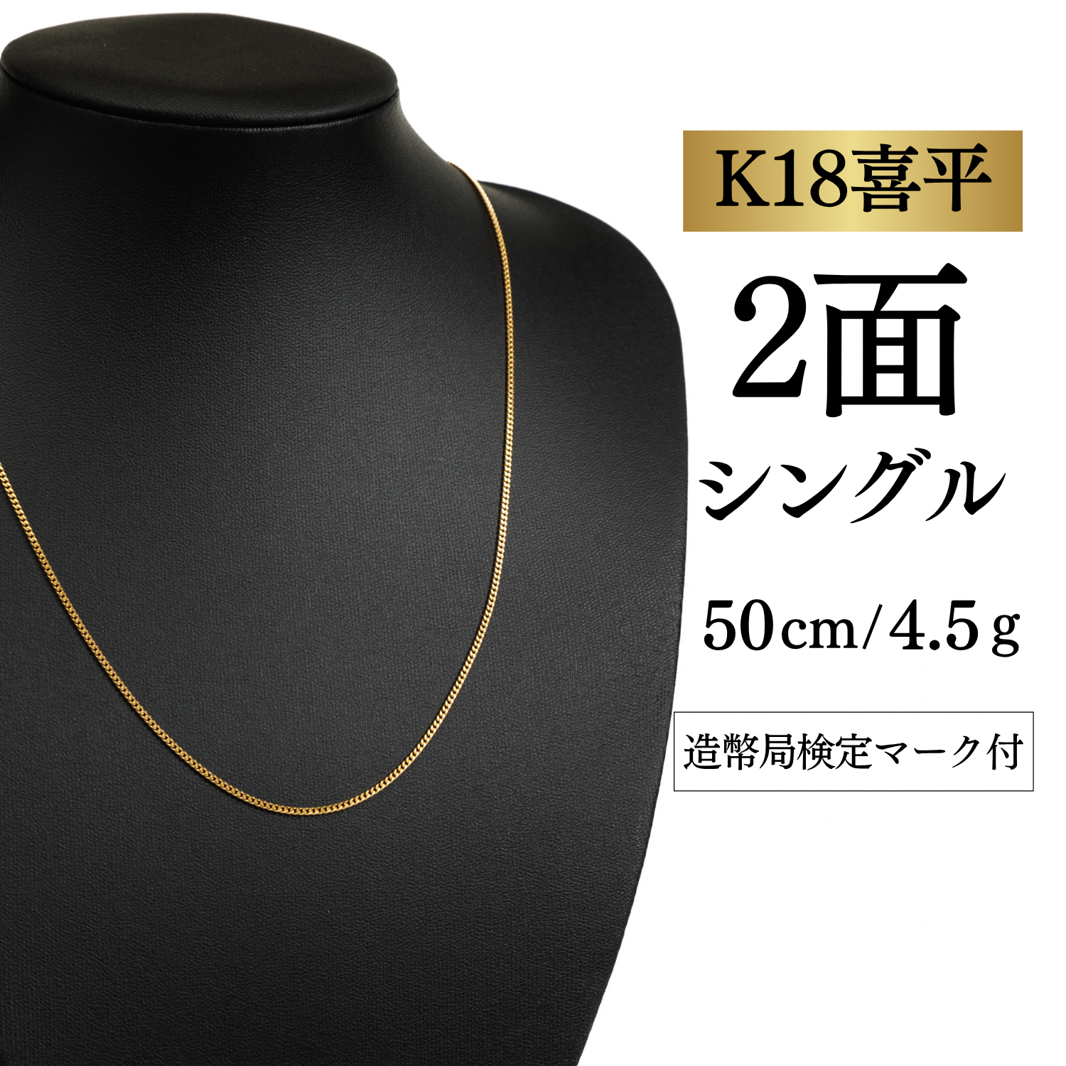 【K18YG/18金】イエローゴールド 喜平ネックレス 2面カット シングル【4.5g / 50cm】