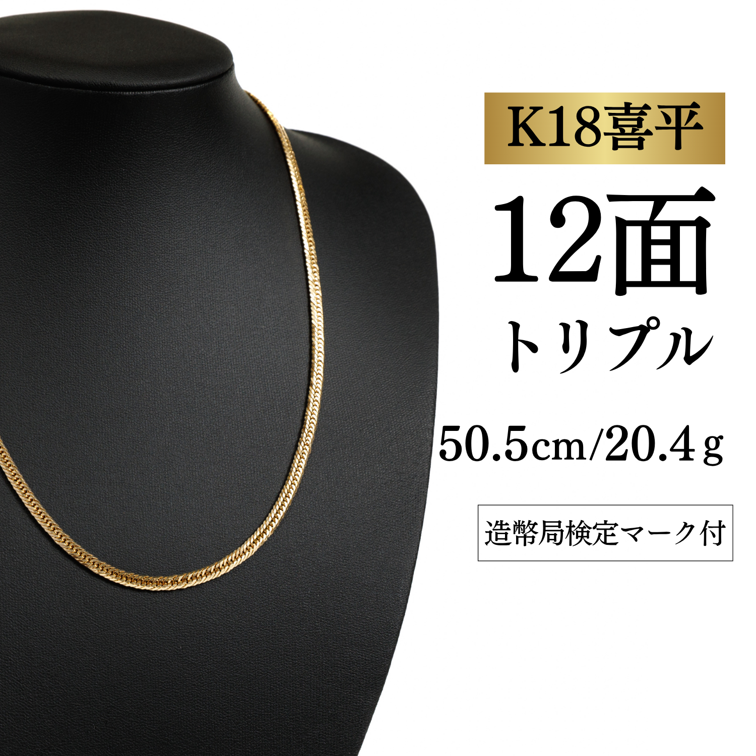 【K18YG/18金】イエローゴールド 喜平ネックレス 12面カット トリプル【20.4g / 50.5cm】